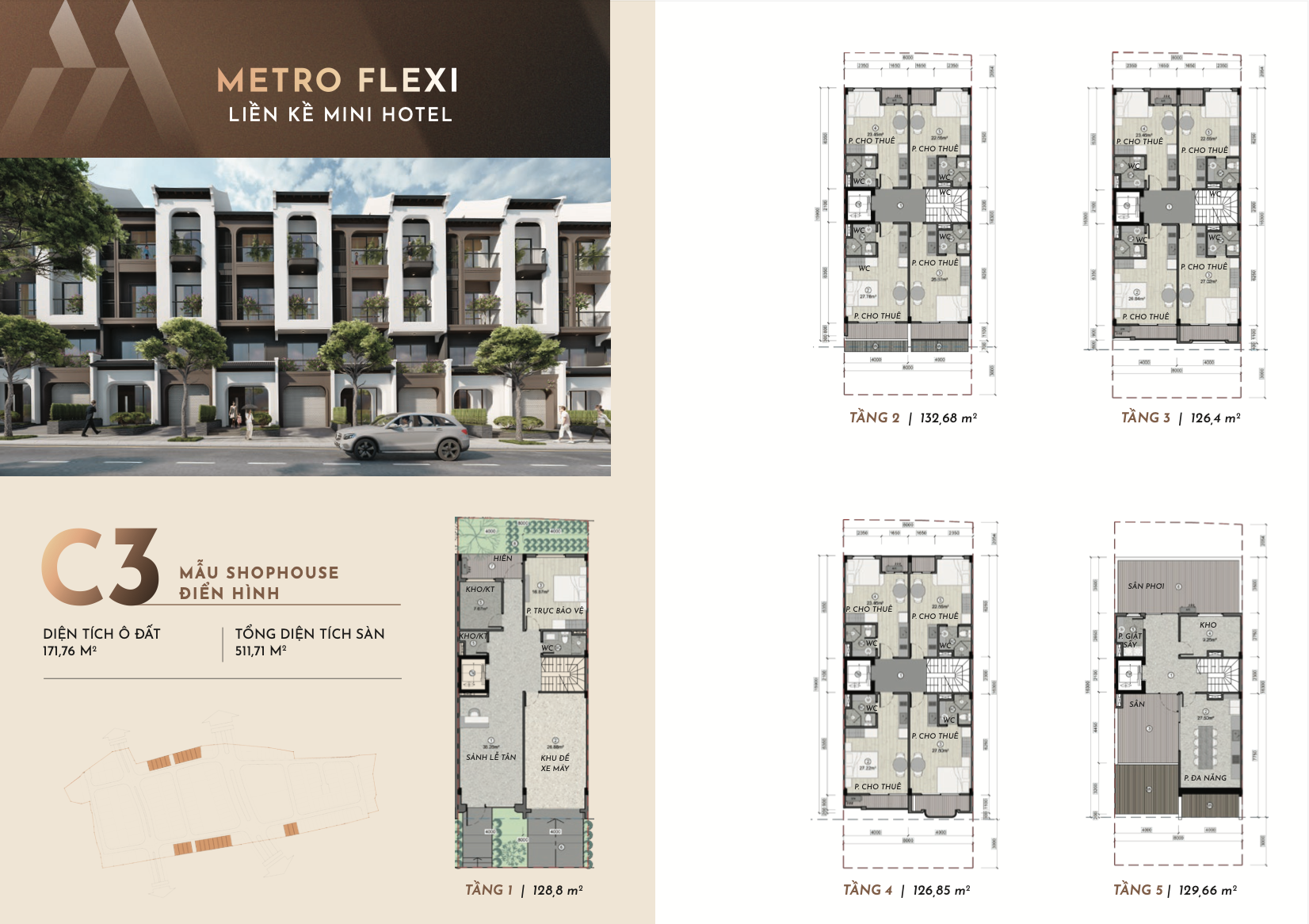 Metro Flexi không phải là nhà liền kề để ở thông thường. Nó được "thiết kế sẵn" để trở thành một Mini Hotel hoặc Căn hộ dịch vụ (CHDV):