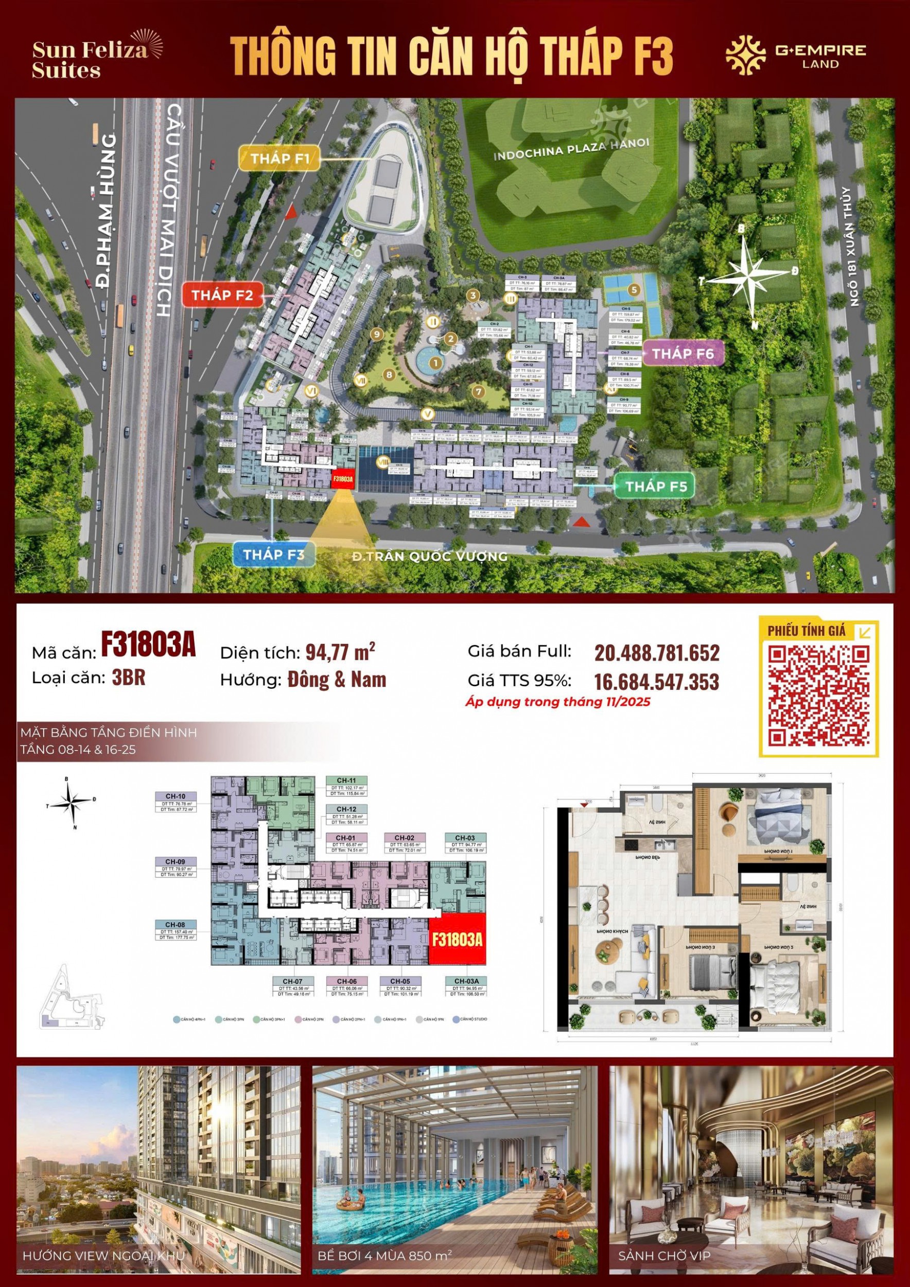 Phân tích của Cố vấn: Căn hộ 4PN+ duy nhất có hướng Đông - Nam tại tòa F3, đây là căn "độc bản". Với chuẩn mực 6 sao "vượt trội" (Bài 4) (sảnh 14m, tầng cao 3.5m), đây là tài sản dành cho chủ doanh nghiệp. Đặc biệt, chiết khấu 16.5% giúp bạn tiết kiệm hơn 5.1 tỷ đồng – một con số khổng lồ.