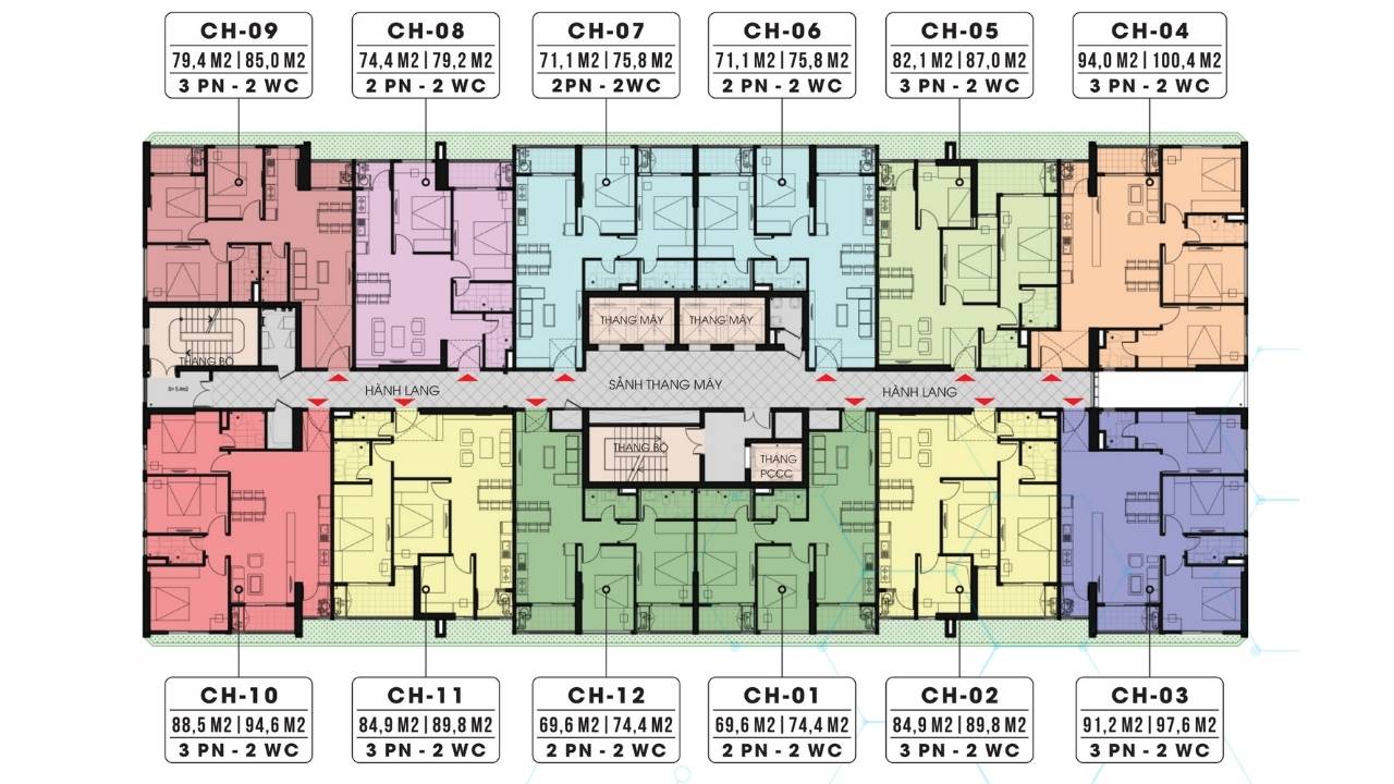 Diện tích: 79.4m² (3PN - 2VS).